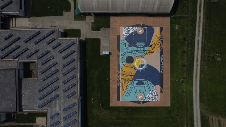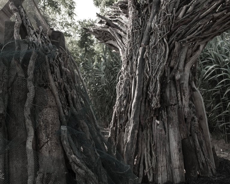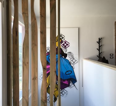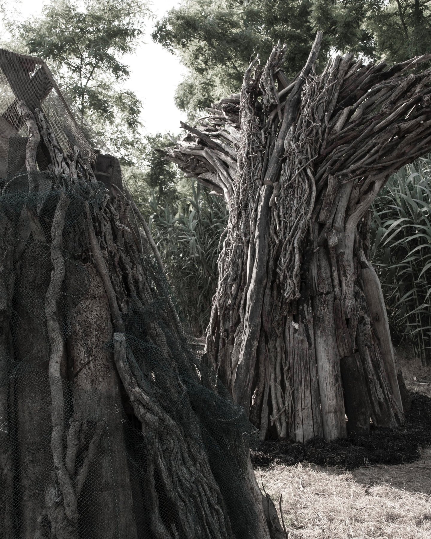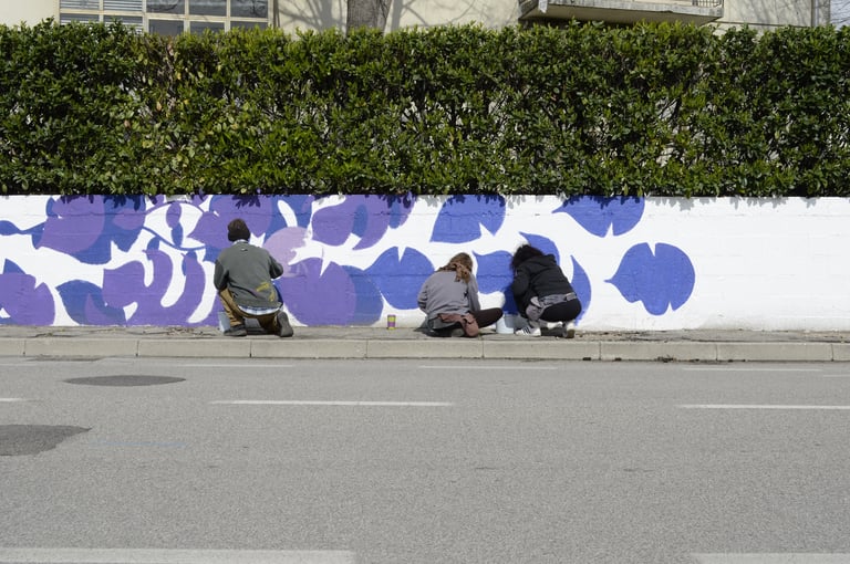 A partire dall’obiettivo 14 dell’Agenda 2030, gli allievi di scultura del Liceo Artistico Pietro Selvatico, guidati delle professoresse Tavian e Filippi, hanno analizzato diverse situazioni di criticità legate all’inquinamento di mari ed oceani e progettato alcune installazioni artistiche che potessero portare attenzione sulle questioni sollevate. L'argomento, caro a Veneto di Venezia che da sempre porta un'attenzione molto alta ai temi della sostenibilità all'interno del progetto di rigenerazione dell'isola attivo da quasi vent'anni, ha portato alla realizzazione concreta di uno dei progetti di questi giovani artisti, prossimi alla maturità. “Oceano – liberazione” è un’installazione composta da 3 code di balena realizzate con una struttura portante fatta di materiali di scarto provenienti dai cantieri dell’isola, materiale di recupero dei pontili, canne di bamboo, con una copertura di legni spiaggiati, bricole, portate dalla corrente e reti da pesca in disuso. Due delle code sono avviluppate in alcune reti da pesca, che spesso abbandonate in mare dopo l’uso diventano trappole mortali, mentre la terza svetta libera come segno positivo di speranza per un futuro di armonia e sinergia tra essere umano ed ambiente.