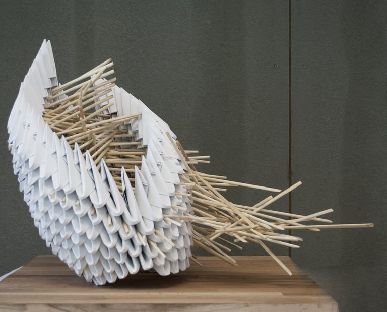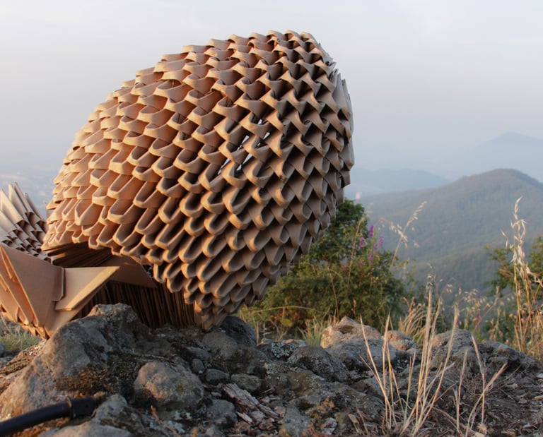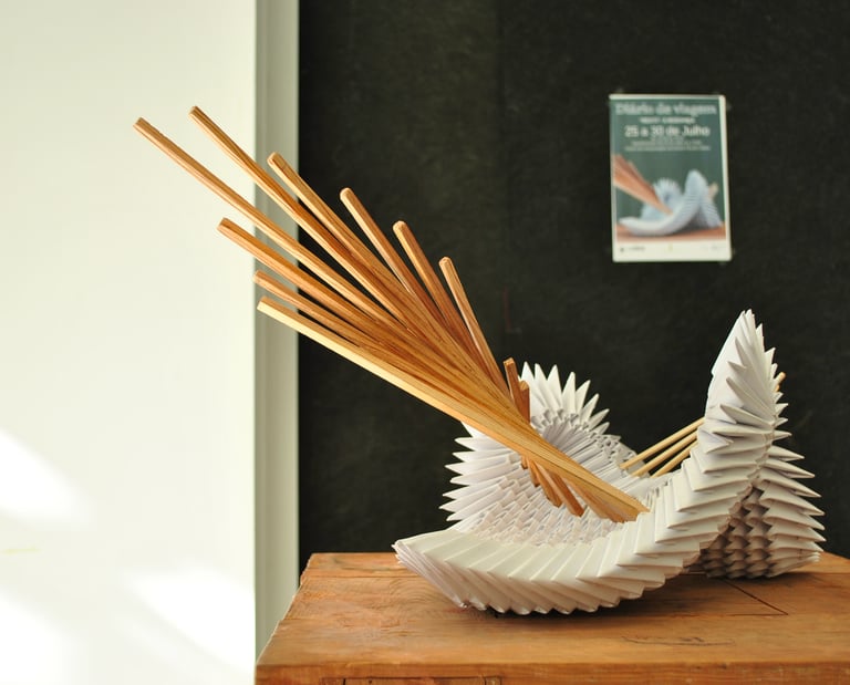 Organismi Geometrici, 2018-2020, carta di recupero e legno